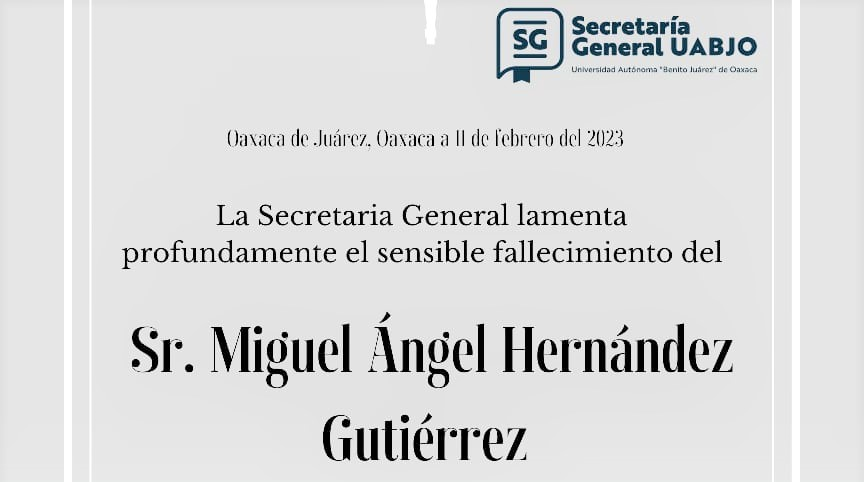 La Secretaría General de la Universidad Autónoma "Benito Juárez" de Oaxaca, lamenta el sensible fallecimiento del: